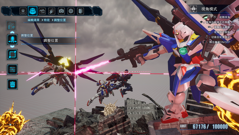 最后两位制作人带来了「场景模型模式」的精彩范例,像是初代《机动战士钢弹》经典的「最后一枪」。其中除了游戏中提供的现成零件与特效之外,还运用巧思组合出原本没有的效果,像是以缩小了的光束剑零件拼凑出来的炫光轨迹与雷电等。最后还示范把「上市纪念钢弹」放进之前制作好的整备库场景中。