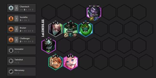 机制解析:克格莫技能为范围魔法伤害,配合海克斯科技羁绊的护盾与增伤,可快速清理敌方后排。科技枪的吸血效果保障其持续作战能力,大天使之杖则通过时间叠加法强,提升后期斩杀线。