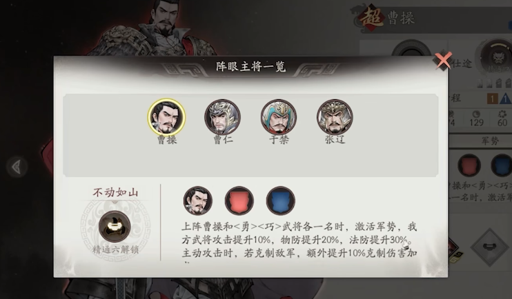 在众多可选武将中,曹操无疑是最值得培养的核心人物之一。他拥有均衡的攻击距离与兵力配置,技能体系兼具输出与团队增益效果,尤其擅长发动范围性打击,能在团战中造成大面积伤害。作为主将出战时,能显著提升全队作战效率。建议搭配具备“勇”与“巧”属性的武将共同出征,进一步强化队伍的攻防转换能力,有效压制敌方阵容。