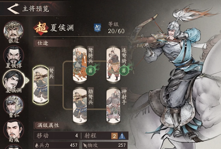 对于偏好远程作战的玩家来说,夏侯渊是一个理想选择。这位射手型武将具备较长的攻击射程,物理攻击力和机动性均属上乘。其技能可触发暴击效果,不仅能对目标造成额外伤害,还能在暴击命中后恢复自身能量,加快后续技能释放节奏。这种自我续航机制使他在持续输出方面表现优异,是后排火力的重要保障。