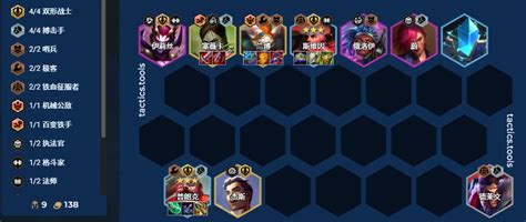 终极形态:三星船长后,升9级开4双形战士+4搏击手,或根据对局情况调整羁绊(如开6搏击手增强输出)。