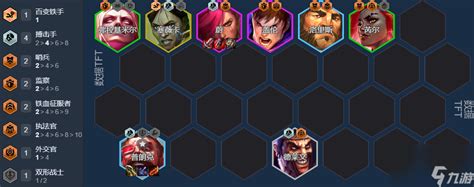 该阵容以普朗克(船长)为核心输出,搭配蜘蛛女皇(伊莉丝)、兰博、乌鸦(斯维因)、厄加特、蔚、赛薇卡、杰斯等棋子,形成4双形战士+4搏击手+2哨兵+2极客+1机械公敌的羁绊体系。