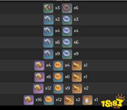 花蜜系列由骗骗花、微光花蜜、原素花蜜构成,对应角色天赋2-10级需求: