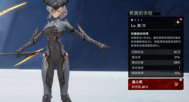 另一款不容忽视的武器是赛壬的拥吻,其内置分裂伤害系统,同时提供20%的攻击速度加成,使普通攻击出手更快。每次普攻造成的伤害会被分为三段,每段约为原伤害的30%。尽管单次打击力度有所分散,但在角色本身具备高基础输出的前提下,依然可以叠加出可观的总伤害。面对群体敌人时,该武器能同时作用于多个目标,显著提升清怪效率,实战中表现出色。合理运用这类武器,往往能达到事半功倍的效果。