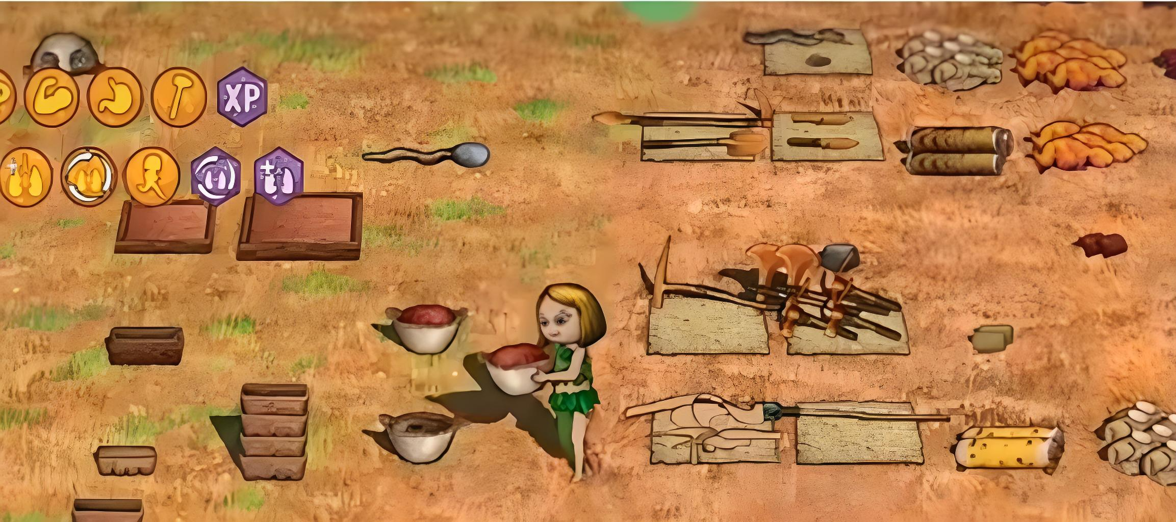 初期阶段,玩家可以制作如斧头、燧石矛或燧石刀等基础近战武器用于捕捉小型生物,例如野兔和野鸡。随着游戏进程推进,可解锁更高级的远程工具,包括弓箭与投石索。这些远程装置允许玩家从安全距离发起攻击,有效降低遭遇反击的风险,特别适用于应对鹿类或其他体型较大的野生动物。