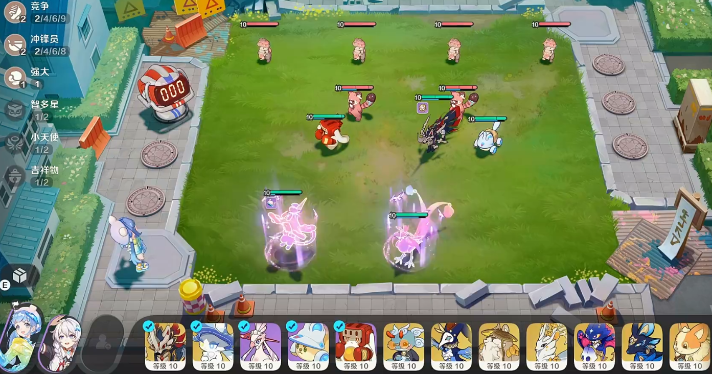 自走棋模式是本作的一大核心亮点。战斗前,玩家需要预先布置出场阵容,战斗开始后角色将自动执行操作,胜负关键在于布阵策略与资源调度。精灵根据职能分为不同类型:前排守护型负责吸收伤害、保护后排;输出型则集中火力快速消灭敌方单位;辅助型精灵可提供治疗或增益状态,影响战局走向。