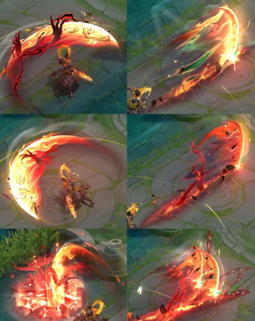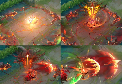 5、特效设计:以火焰元素为主题,结合焰爪、冥府殿宇以及熔岩等元素进行演绎设计,霸气尽显。