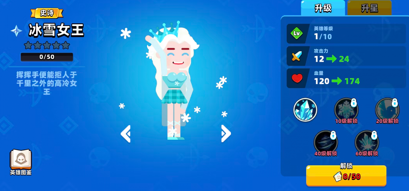 作为一位史诗级英雄,冰雪女王从初始阶段就展现出不俗的战斗潜力。她的第一个主动技能为“冰雪魔法”,释放后可对目标区域造成冰元素伤害,并伴随雪花特效。当这些特效命中地形时,有一定几率生成冰棱柱,进而触发小范围爆炸伤害。此外,在角色达到10级时将解锁“冰霜亲和”这一被动技能,能够小幅提升所有冰属性技能所造成的伤害输出,为后续技能叠加打下基础。