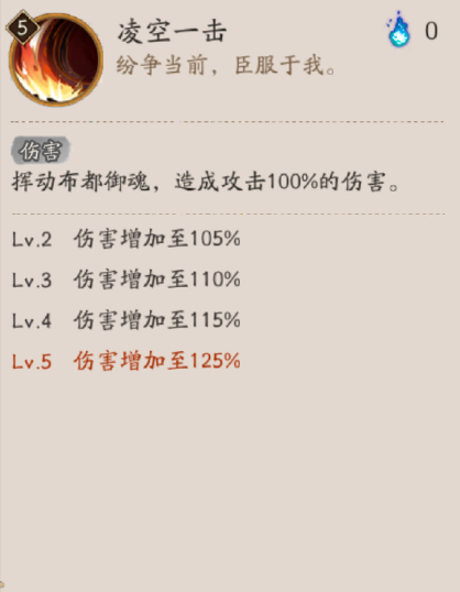 Lv.5 处于攻击架势时,每强化1次布都御魂,「骄阳长明」群体攻击系数提升5%,至多提升15%