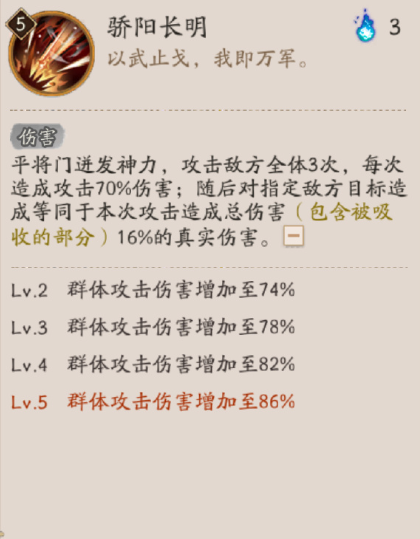 平将门迸发神力,攻击敌方全体3次,每次造成攻击70%伤害;随后对指定敌方目标造成等同于本次攻击造成总伤害(包含被吸收的部分)16%的真实伤害。