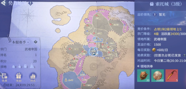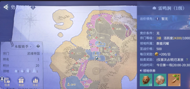 想要参与宗门领地战,首先必须加入一个活跃且等级较高的宗门。宗门等级和成员活跃度将直接影响能否获得参战资格。以索托城为例,作为三级区域,其竞价门槛要求宗门已占领至少一块二级领地,并且宗门自身等级需达到四级以上。只有满足这些前置条件,才能报名参与更高层级的领地争夺。在正式开战前,每位魂师都应提前做好准备,包括提升个人修为,这主要通过完成主线任务与日常活动来实现,从而增强在战场中的生存与输出能力。
