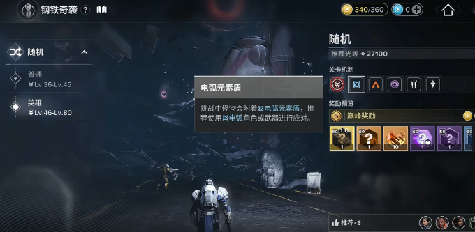 建议队伍整体战力达到28,000左右再挑战,否则在面对高强度敌人时容易被迅速击败。相比常规副本,钢铁奇袭难度更高,但回报也更为丰厚。进入挑战界面后,可在右侧查看关卡机制说明。此模式设有三种元素护盾:烈日、电弧与虚空,因此组队时应确保涵盖这三类属性角色。推荐配置如三名烈日、两名电弧和一名虚空角色。核心输出位必须携带“狼”,同时搭配格温,前者具备强力爆发能力,后者既能补充伤害又能有效控场。