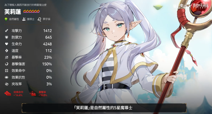 第七史诗与葬送的芙莉莲联动推出的芙莉莲,作为自然属性魔导士,集群体爆发输出与团队能量支援于一体,同时具备独特的免伤机制。本文将详细介绍该角色的核心机制、技能解析、实战操作技巧、队伍搭配思路以及养成方向,帮助玩家全面掌握这位兼具强度与特色的联动限定角色。