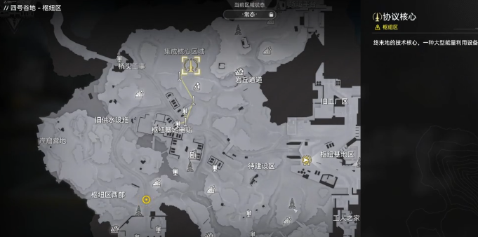 所有电力均源自“协议核心”,它是整个基地的能量中枢。所有的用电设备最终都要追溯到这个源头。然而,电力无法无限延伸,必须借助中继器进行远距离传输。中继器的作用类似于信号放大装置,每间隔约80米就需要部署一个,否则超出范围的区域将无法获得电力。地图上显示的黄色线路即为已铺设的电力路径,玩家可通过观察这些线路判断当前电力覆盖情况。