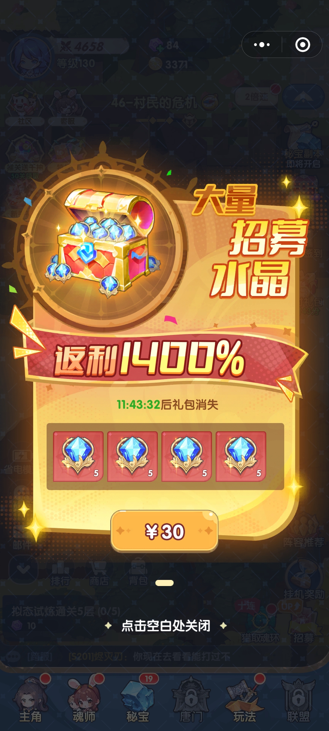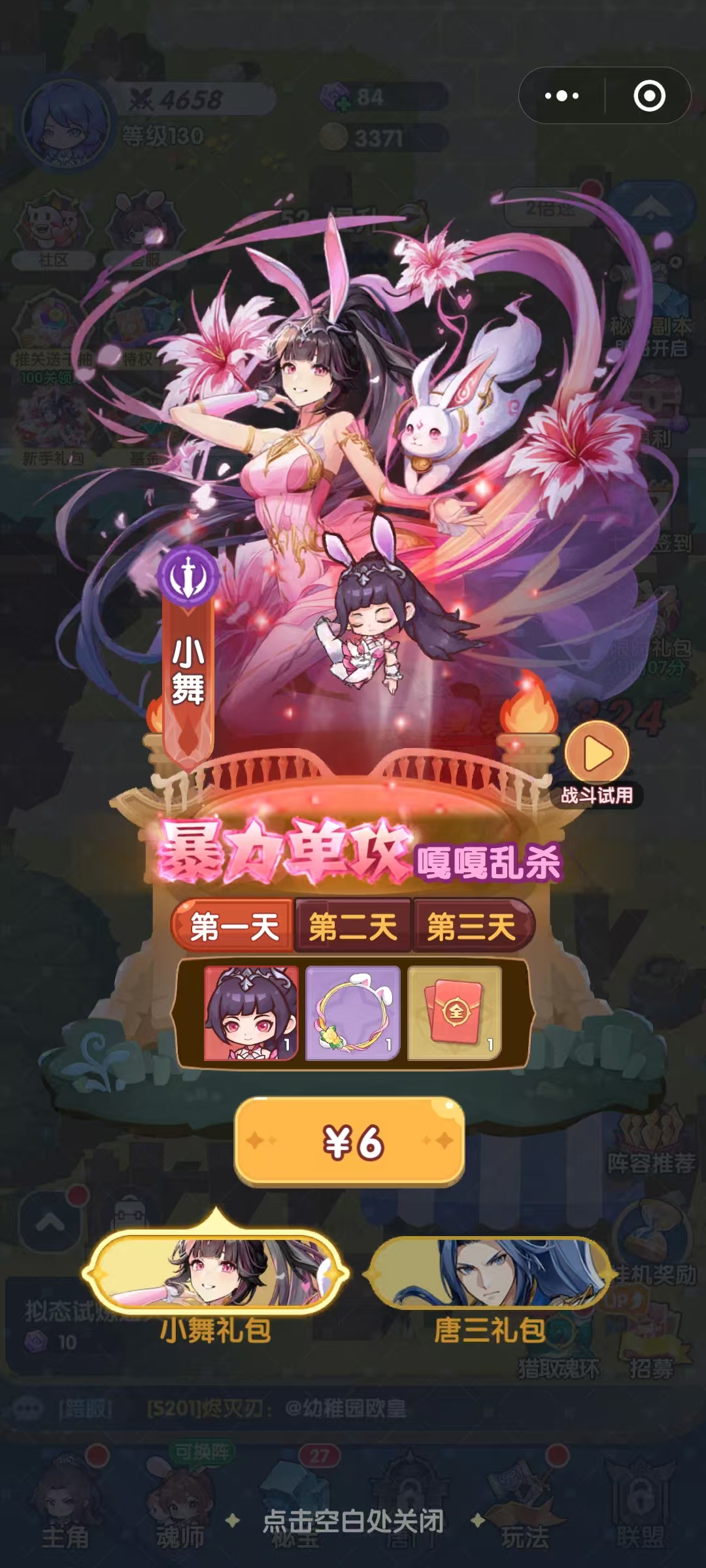 对于资源有限的微氪玩家来说,这套阵容获取路径清晰、培养成本可控。相较于依赖稀有抽卡的强势组合,史莱克成员更容易通过活动与基础招募获得。建议开局优先购买6元档的小舞专属礼包与30元档的唐三特惠包,仅需36元即可锁定两大核心输出,奠定阵容基础框架。随后可考虑入手68元魂师基金,累计返还高达180个招募水晶,大幅提升后续抽取效率。