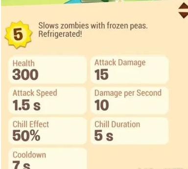寒冰射手的核心机制依然围绕着减速与持续输出展开。它通过发射冰冻豌豆攻击前方直线路径上的僵尸,并附带显著的减速效果。这种控制能力在防守节奏中起到关键作用,能有效延缓敌方推进速度。种植成本仅为5点阳光,经济实惠,适合开局阶段频繁部署。尽管生命值仅有300点,防御能力一般,但足以应对前期普通僵尸的威胁。