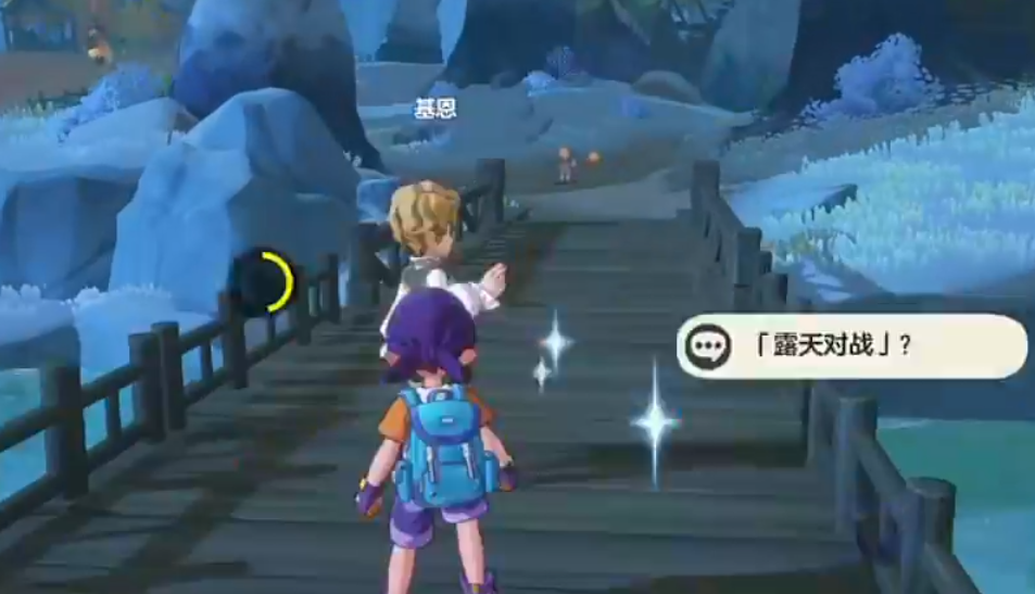 要找到基恩,建议先传送到甜水镇附近的魔力源点。抵达后沿主路直行,穿过咕噜咕噜潜滩,随后会看到一座横跨水面的桥梁。基恩就驻守在这座桥上,接近并与之对话即可开启对战流程。