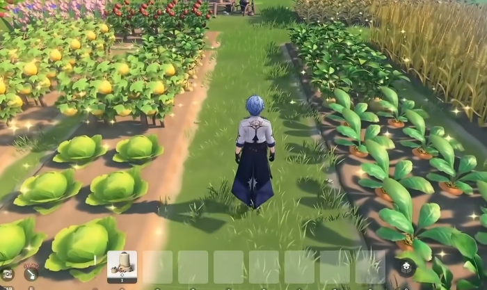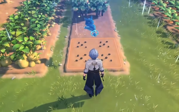 本作采用二次元美术风格,玩家可操控个性鲜明的角色在广阔的地图中自由行动。除了丰富的角色设定外,游戏中还设计了多种宠物伙伴,能够伴随玩家穿梭于山海之间,共同完成各类任务。整体画面呈现出梦幻且立体的视觉效果。除常规冒险内容外,种田也成为核心生活玩法之一。通过简单的操作即可开启农耕生活:在野外探索时收集种子资源,选择合适的荒地进行开垦,随后将获得的种子播撒其中,并定期浇水以维持作物生长。水分是影响植物存活的关键因素,若长时间未浇水导致土壤干涸,作物可能枯萎死亡。