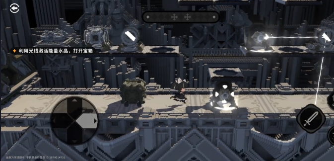 第一关难度较低,适合新手适应操作。进入后可开启寻宝人挑战任务,首先跳跃至第一个交互点,随后前往第二个交互点,完成光线角度调节即可获得奖励。第二关需要依次跳上平台,在抵达第二个平台后触发交互功能,使镜面结构上升,此时平台会逐渐下降至底部。落地后向左侧移动并准确跳跃至中央交互点位置,完成该阶段目标。