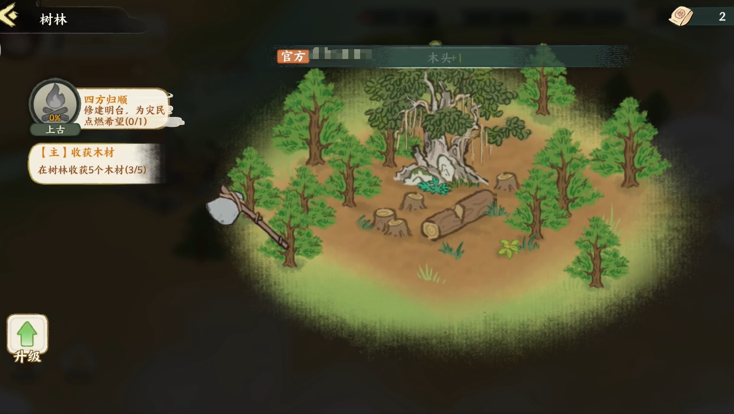尽管明台无需升级,但它的建造过程是每位玩家必须经历的第一步。游戏初期,在选定服务器并进入主线剧情后,系统将自动触发首个教学任务——明台的重建。初始状态下,明台仅是一处废墟,玩家需根据指引绘制建筑蓝图,随后前往伐木场采集木材资源。总共需要收集5根木头,操作方式为点击工具栏中的斧头图标,再依次点击五棵树即可完成采集。材料齐备后返回原地,即可启动搭建流程,完成后明台将正式矗立于地图之上,标志着上古篇章的正式启动。