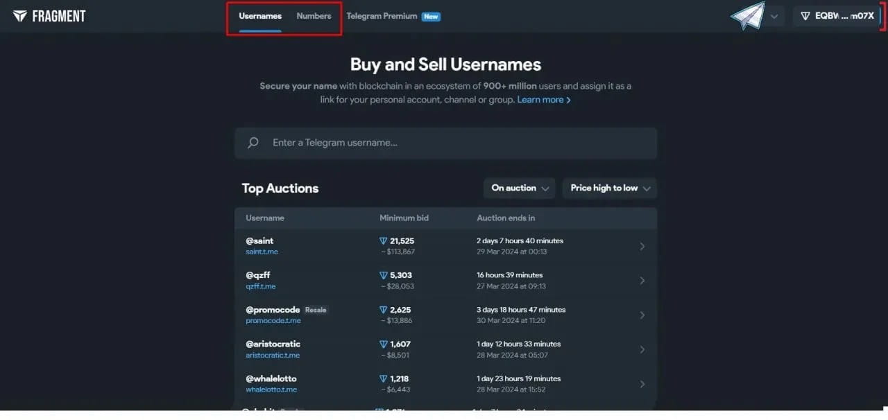 Fragment是Telegram的官方市场,在这里可以购买、出售和拍卖用户名和虚拟电话号码。它由TON区块链提供支持。通过安全和匿名地交易独特的用户名和号码,为用户提供了收入来源。