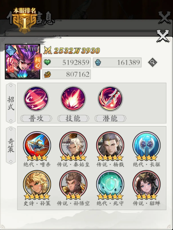 当游戏进程推进至后期阶段,面对更高强度的竞技对抗以及跨服战斗时,建议采用黄帝+杨戬+上官婉儿+李世民+扁鹊的阵容结构。黄帝拥有强大的群体伤害能力,可在短时间内造成大面积压制;杨戬具备持续控制与抗压能力,为团队争取输出空间;上官婉儿可优化输出环境,保障主力角色稳定发挥;李世民进一步增强队伍容错率,提升战术灵活性;扁鹊依旧承担续航重任,确保队伍在持久战中不落下风。根据实际对战情况灵活调整站位与技能释放顺序,是取得胜利的关键。