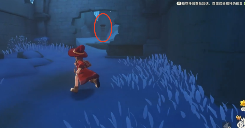进入副本后,首要任务是点亮四支火炬以解除封印。首先沿着右侧的峭壁前行,抵达尽头即可发现第一支火炬。使用队伍中的火系精灵进行互动即可将其点燃。完成之后向下移动,前往旋转阶梯所在的区域。
