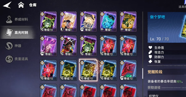 阵容搭配方面,游戏中敌人分为高物理抗性和高魔法抗性两种类型,因此单一固定阵容难以应对所有战斗场景。面对高物抗敌人时,应及时切换为以法术伤害为主的阵容,例如使用奇异博士或暴风女等角色;而遭遇高爆发对手时,则需确保坦克具备稳定嘲讽能力,并配合治疗与护盾类技能,防止输出单位被瞬间击杀。装备选择上,前期无需过分追求品质,蓝色和紫色装备均可胜任过渡需求,输出角色可佩戴“做个梦吧”套装暂用。