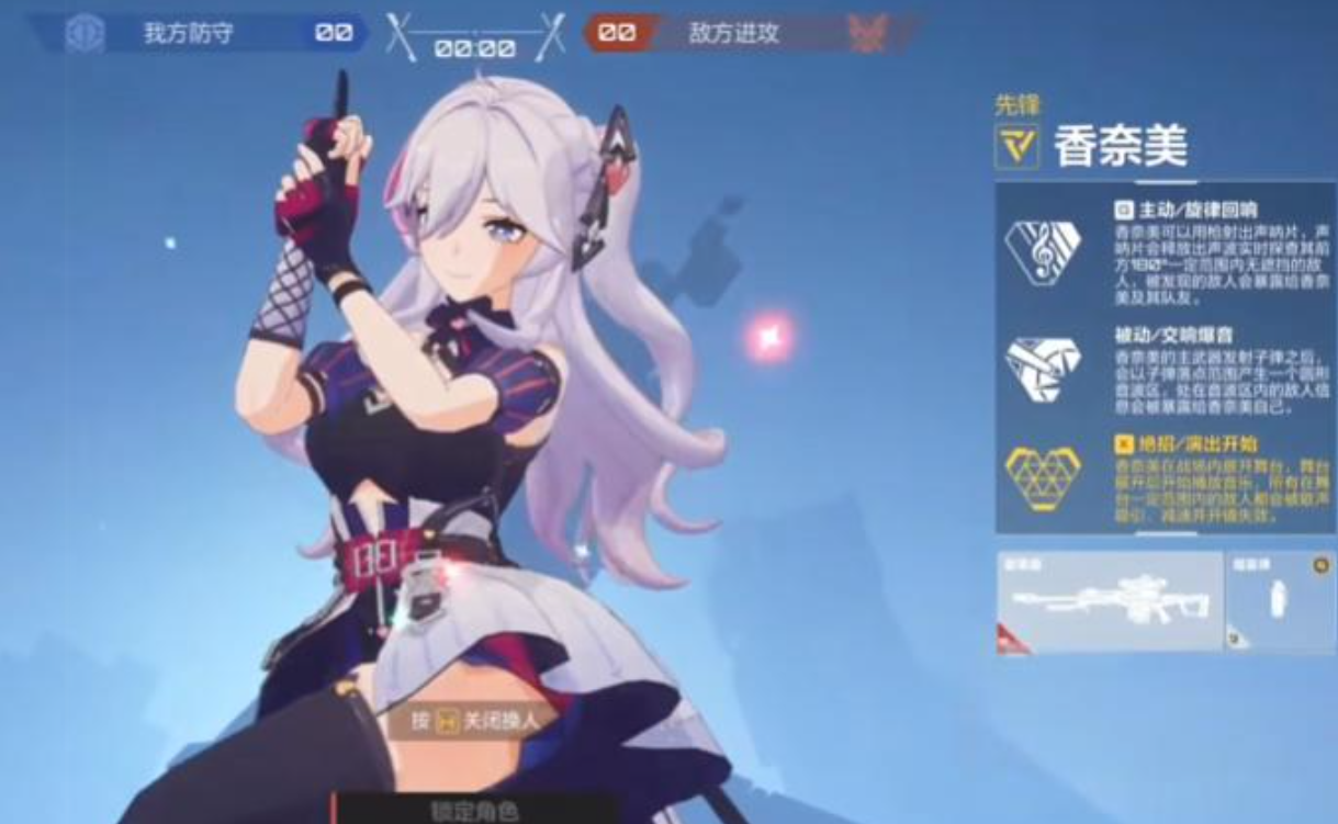 香奈美作为一名先锋型角色,拥有出色的侦查与干扰能力。她的普通攻击命中后可暴露敌人位置,便于队友快速锁定目标进行集火。此外,她还具备一项特殊技能——召唤音乐舞台,通过释放音波能量扰乱敌方状态,实现短时间内的群体控制效果。这一机制使她在团战中扮演着至关重要的角色,既能打乱对手阵型,又能为己方创造有利输出环境。凭借高机动性与功能性,香奈美在各类战斗场景中均表现出色。