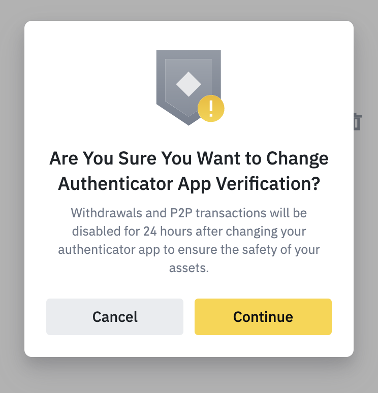 请注意,为了保护您的账户,更改验证器后,提现和P2P销售将被禁用24小时。