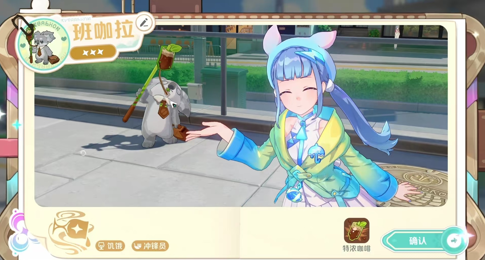 从站位设计来看,班咖拉具备一定的前排承伤能力。其所属元理为“饥饿”,拥有“冲锋员”特性,能够提升全体我方单位的生命值上限,而冲锋员自身的生命上限还会获得额外比例加成。当达成八羁绊条件时,全队生命上限可提升600点,且冲锋员单位额外享受100%的生命加成。尽管当前“饥饿”元理的联动精灵较少(如企茶茶、奶盒牛),体系尚不完整,但班咖拉本身的生存能力和团队增益仍十分可观。