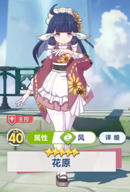 花原为风属性输出兼辅助型角色,擅长在战场中制造范围伤害并为团队提供增益支持。她的技能可向指定区域投掷种子,落地后产生爆炸效果,造成大范围风元素伤害。随着等级提升,飞镖数量增加,并附带穿透能力。其“花飞舞”技能可在扇形区域内释放植物攻击,使敌人陷入持续气旋状态,受到多段伤害。能量叠加后还能进一步提高后续输出,在长时间战斗中表现尤为突出,适合应对群怪场景。
