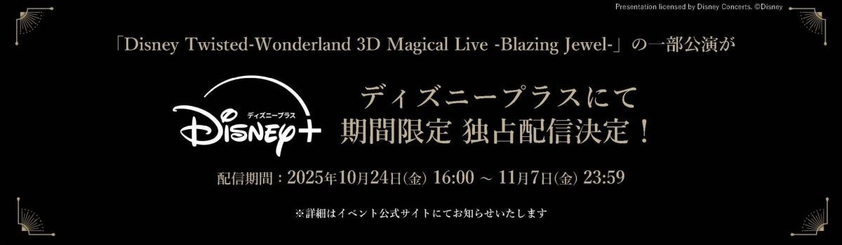 该情报是在 10 月 11 日至 13 日举办的 3DCG 演唱会活动「Disney Twisted-Wonderland 3D Magical Live -Blazing Jewel-」上公布。