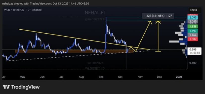 今年初触及2.10美元高点后,$WLD健康回踩突破位进行测试——这种走势往往是趋势延续的前兆。