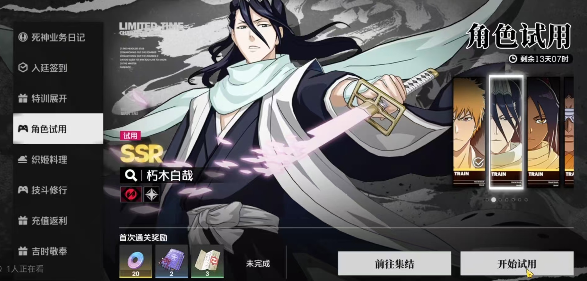 首位推荐的是SSR级战术角色朽木白哉。他以强大的控制能力和团队增益著称。其技能“光阵”可有效限制敌方行动,为队伍创造输出环境。当战场技激活后,全队斩系伤害将获得提升,显著增强整体输出效率。普攻可发射剑刃造成高额伤害,若技能释放后战场技进入冷却,还可通过再次点击按钮触发追加攻击,提升连招流畅度。开启必杀技后,召唤千本樱展开猛烈攻势,并进入持续15秒的万解状态。在此期间,普通攻击与战技均得到强化,且即使角色被替换下场,万解效果依然保留,战略价值极高。