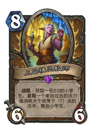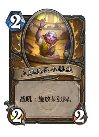 战吼:获取一张2/2的小学生。发现一个来自过去的法力值消耗大于或等于(7)点的法术,教会小学生。