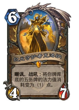嘲讽。战吼:将你牌库底的五张牌的法力值消耗变为(1)点。