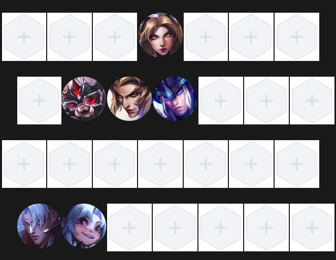 前期推荐拿拼(2)上单+(2)射手羁绊过渡,上单羁绊可以单独站位发育。后排可以用薇恩或者厄斐琉斯带装备过渡。