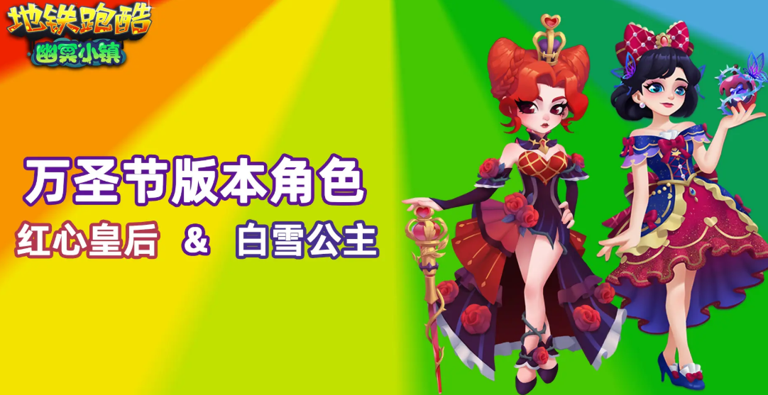 此次版本推出两位万圣节特别角色:“白雪公主”与“红心皇后”。前者周身环绕幽蓝色蝶群,动作优雅却透出阴郁气息,蝶影仿佛在低语某种古老的诅咒;后者则在夜色中翩然起舞,笑容甜美却暗藏危险,展现出极具张力的角色魅力。