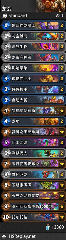 炉石传说标准龙战卡组10月
