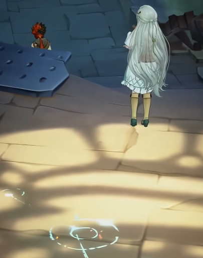 继续推进过程中,会穿插大量剧情内容,玩家可选择性观看。此阶段主要任务为前进与开启宝箱收集资源。经历一段较长的动画演出后,主角实现力量觉醒,并随之开启基础战斗操作教学。