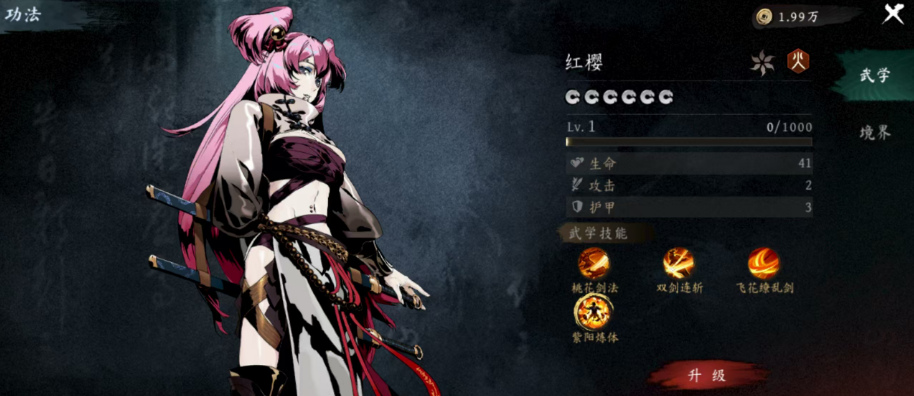 红樱是剑法类角色中的佼佼者,凭借高频率连击与武器协同机制展现强大战斗力。使用双剑时,她的输出效率达到峰值,每次命中可触发三次各10%的伤害。若连续五次成功命中目标,则会激活“缭乱斩”技能,进一步强化下一次攻击。此外,“飞花缭乱剑”技能可使缭乱斩的伤害提升50%,在炼体系统加持下,整体输出能力显著增强,但生命损耗也随之上升。