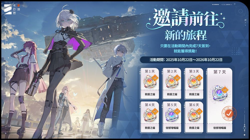 活动内容:7 天内每天登入时,均可获得签到奖励。