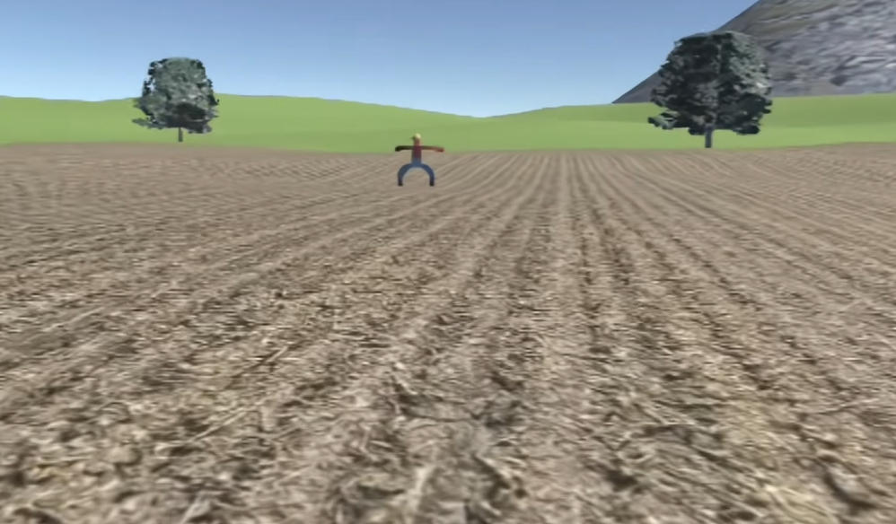 初到此地时,主角试图寻找出路,于是走向附近的小屋敲门求助,却发现屋内无人回应。四周环境看似平静,但在远处的田地中似乎有一个人影伫立不动,成为唯一的线索,因此主角决定前去探查情况。