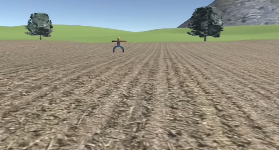 当接近远处一处形似稻草人的结构时,危险悄然降临。该角色会在玩家靠近瞬间突然发动惊吓攻击,并伴有诡异童谣的环绕音效。随后,画面转黑,主角醒来时已被困于房屋内部,正式进入游戏的核心谜题阶段。
