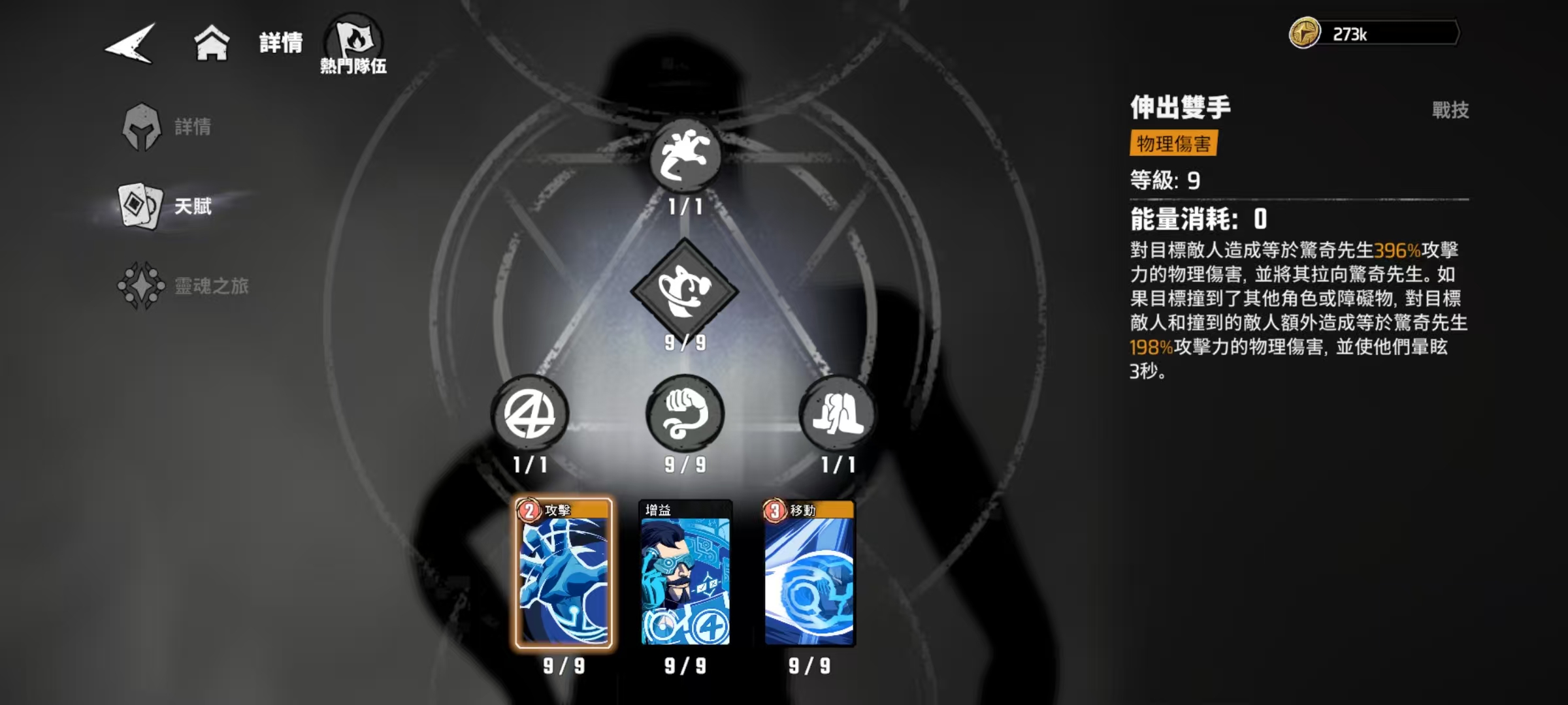 作为战士职业的代表,神奇先生不仅具备出色的生存能力,还拥有显著的团队增益效果。其被动技能可在释放战技或终结技后,使自身受到的伤害减少24%,持续时间长达8秒,有效提升战场存活率。他的终极技能“超级大脑”能够为全体己方单位提供终极能量,并赋予“神奇攻势”状态,在此状态下释放的终结技将造成更高伤害,持续15秒,极大增强了队伍的整体爆发输出能力。
