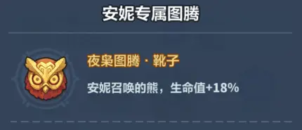 将安妮当做副C或辅助进行培养,更偏向装备【续航类】的图腾,其中最推荐[夜枭]图腾,不仅能大幅提高召唤熊生命值,而且该图腾是普通图腾,获取难度较低。