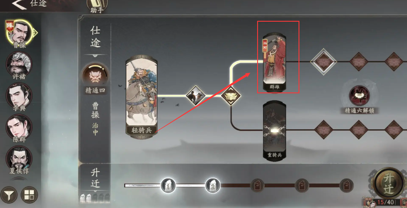 值得注意的是,尽管骑兵阵容拥有极高的爆发潜力,但其对作战地形极为敏感。只有在平坦开阔的地图环境中,才能充分发挥机动突袭的优势;若处于复杂地形,则整体战斗力将大幅削弱。进阶培养方面,建议优先将张辽升至一阶段,解锁关键技能,而曹操需达到二阶段后方可获得更强力的团队增益能力。