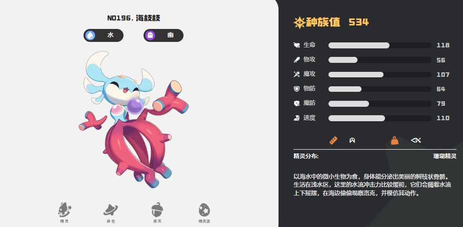 对于非付费玩家来说,建议优先发展以PVE为核心的培养路线。推图是游戏中不可或缺的一部分,而资源获取主要依赖日常任务与系统奖励等基础途径,因此数量相对有限。在这种情况下,选择能够高效推进主线剧情和副本挑战的精灵尤为重要。首推精灵为海枝枝,该角色在玩家达到20级后即可捕捉。它拥有水系与幽系双重属性,在前期具有出色的适应性,且后期可通过孵化稳定性格,进一步提升战斗表现。