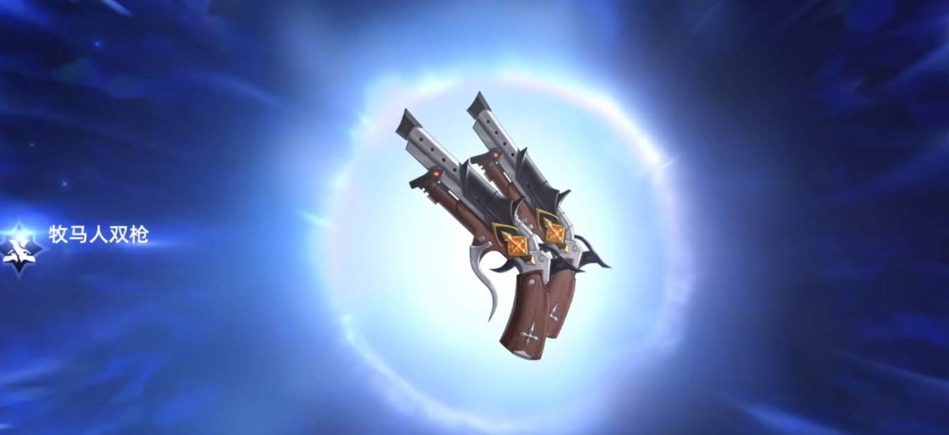 首推武器为牧马人双枪,这是一款专为高机动战斗打造的双持手枪。其外观融合经典枪械元素与蒸汽朋克细节装饰,视觉表现极具个性。该武器支持双侧连续射击,近距离输出能力极强,越靠近目标伤害越高,非常适合喜欢快速突进、灵活走位的玩家使用。